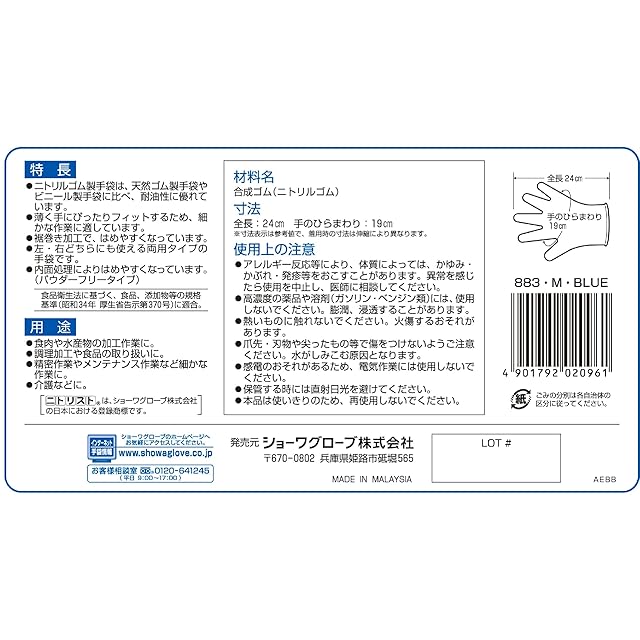 ショーワグローブ(Showaglove) 【ニトリル手袋・ケース販売・1,000枚】 No.883 ニトリスト・タフ 100枚入 Mサイズ 10函 食品衛生法適合 左右兼用 パウダーフリー ラテックスフリー 使い捨て