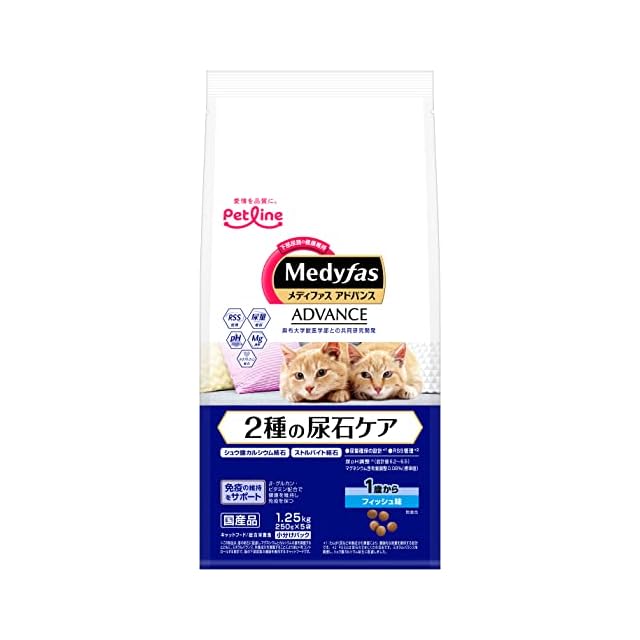 メディファスアドバンス 2種の尿石ケア 1歳から フィッシュ味 【シュウ酸カルシウム/ストルバイト/国産/アルミ小分け」 1.25kg(250g×5)x6(ケース販売)
