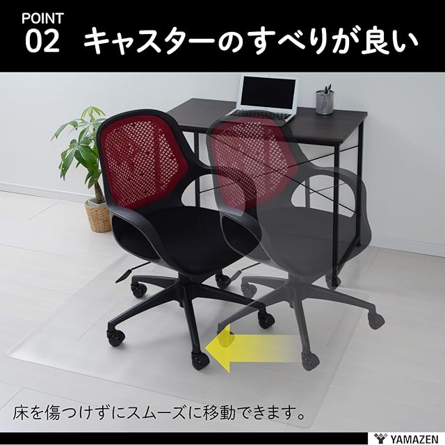 山善(YAMAZEN) チェアマット 椅子 マット 傷防止 シート ゲーミング 100×80cm 1.5mm厚 拭くだけお手入れ チェアーマット 床保護 床 デスクチェアマット ブラック CFM-1080(P)BK)* | Trend Design BASE店