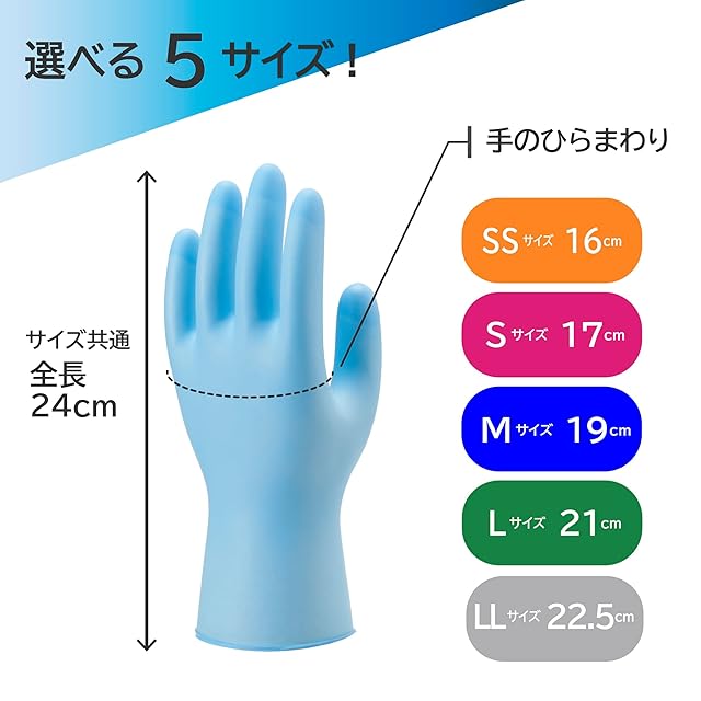 全長:24cm / 手のひらまわり:16cm / サイズ:SS / 入数:100枚