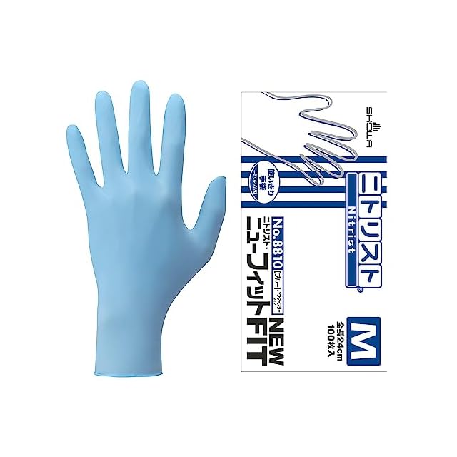 【ケース販売・1000枚】 ショーワグローブ(Showaglove) No.8810 ニトリスト・ニューフィット 100枚入 ブルー Mサイズ 10函
