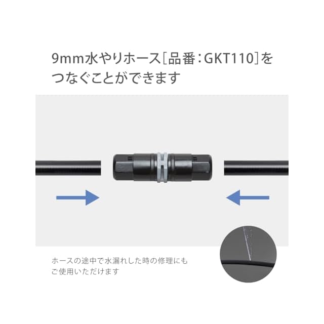 9mm水やりホース同士の接続や延長にお使いいただけるアイテムです。