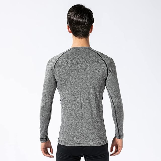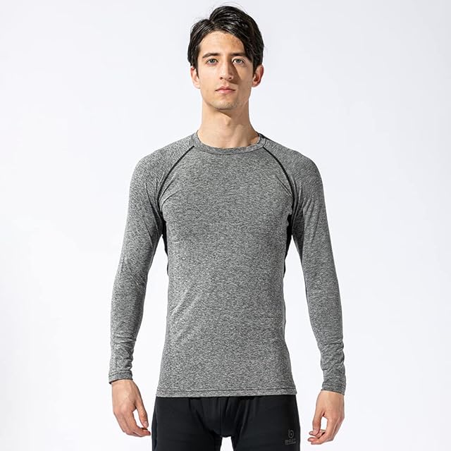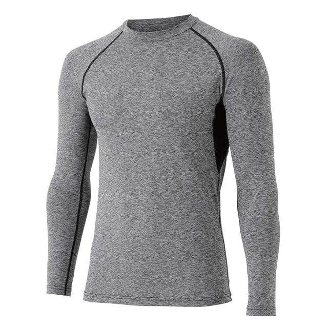 おたふく手袋(Otafuku Glove) 夏用インナー 長袖 丸首[吸汗速乾 消臭 接触冷感 コンプレッション メンズ] JW-623 カチオングレーxブラック S