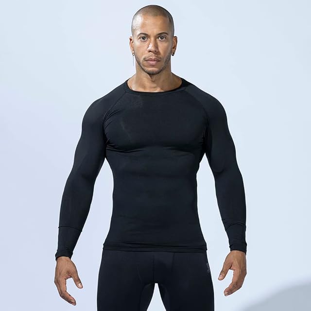 おたふく手袋 夏用インナー 長袖 丸首[吸汗速乾 消臭 接触冷感 コンプレッション メンズ] JW-623 ブラック 3Lサイズ