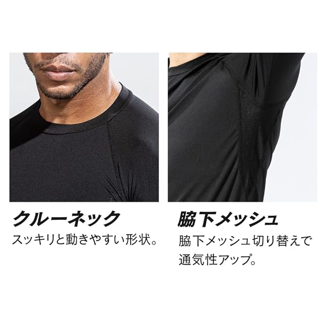 商品名:おたふく手袋 夏用インナー 長袖 丸首[吸汗速乾 消臭 接触冷感 コンプレッション メンズ] JW-623 ブラック 3Lサイズ