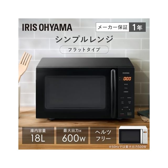 シンプルレンジで操作簡単!庫内容量18L、最大出力600W、ヘルツフリー。