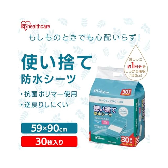 商品名:アイリスオーヤマ(IRIS OHYAMA) 防水シーツ 使い捨て 抗菌ポリマー 介護 子供 赤ちゃん ペット ベッド 大容量 大判 59cm×90cm 120枚入(30枚×4個セット) FYL-30