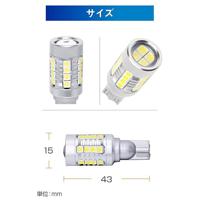 【スペック】色温度6000K / 光束(1球)1800lm(電流及び光束は発熱とともに徐々に抑制されます 冷却後初期値に戻ります) / 電圧:12-30(V) ※12V 軽・普通車専用 直流(DC)のみ対応 / 電流1.3A / 寸法43X15mm / 極性フリー / 定電流ドライバ / 過熱保護設計 / LED2個 説明書