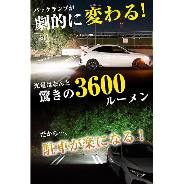 商品名:ぶーぶーマテリアル T16 LED 爆光 バックランプ 3600lm 12V 無極性 車検対応 ホワイト 2個