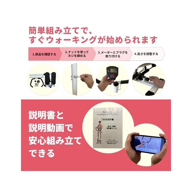 商品名:【理学療法士監修】Aspiracion ステッパー 静音 ステッパー健康器具 足踏み健康器具 運動器具 ウォーキングマシン 有酸素運動 ハンドル付き 高齢者向け 運動初心者向け