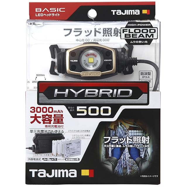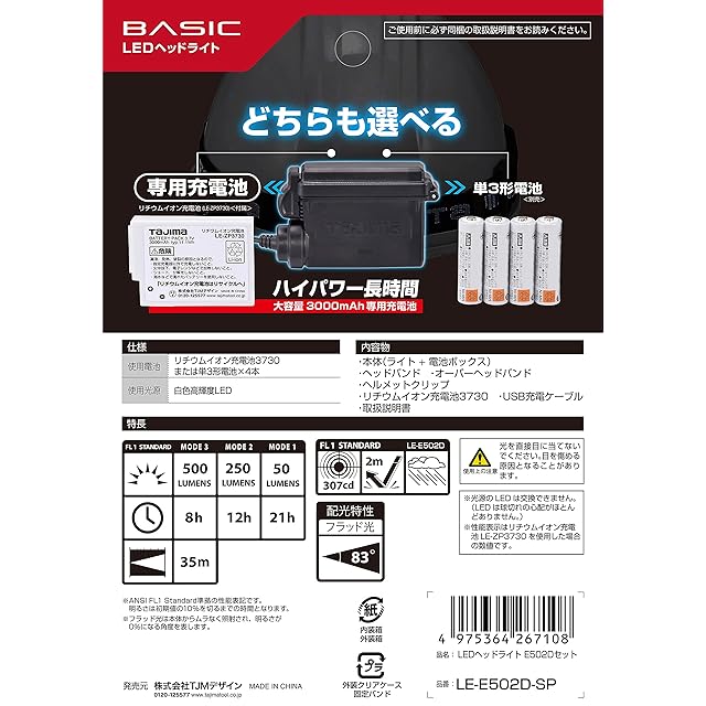 商品名:TJMデザイン タジマ(Tajima) LEDヘッドライトE502Dセット LE-E502D-SP 専用充電池付 黒金
