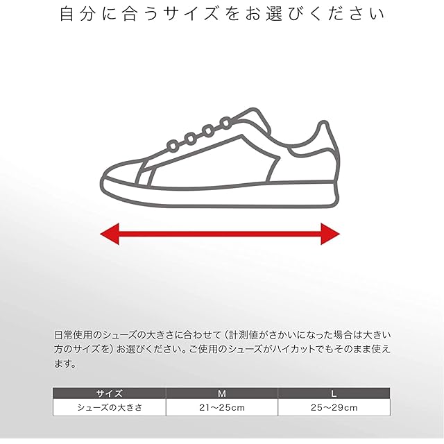Lサイズ:シューズの大きさ25~29cm(※日常使用のシューズサイズに合わせてお選びください。)