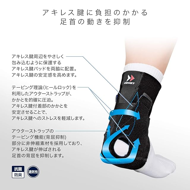 アキレス腱パッドとアウターストラップでアキレス腱へのストレスを軽減