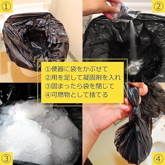 【 特徴 】(※この商品は個包装タイプではありません。80個の凝固剤と80枚の排便袋が箱に入っています)小便・大便のどちらにも使用可能で、凝固剤には高吸水性ポリマーを使用しており、排泄物を素早くゼリー状に固め、アンモニアなどの悪臭をしっかり消臭しつつ、菌の繁殖も抑える除菌効果を備えています。災害対策だけでなく、断水時やアウトドア、介護など多様なシーンで活用されています。防災士監修のもと開発された災害対策用トイレで、断水や停電、地震、台風などの災害蓄用トイレ、キャンプ・登山などのアウトドアトイレ、介護用トイレにもご使用いただけます。