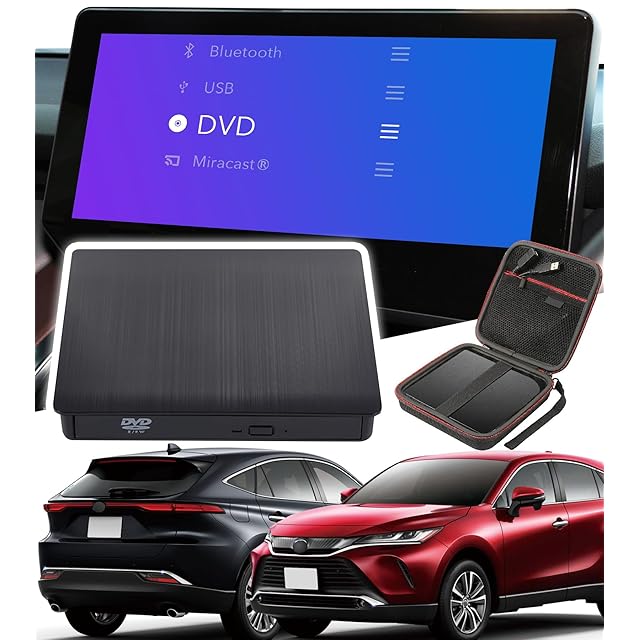 <b>【カーシアター&コンサートホール】</b><br>・ハリアー80系適用プレーヤー。<br>・USBに挿すだけ! 車内の通信用USBポートに接続すれば、純正ディスプレイオーディオの画面でDVD・CDを視聴することが出来ます。 <br>・Wi-Fi環境がなくても使用可能。 <br><br> <b>【ケーブル】</b><br>・USB変換アダプターは不要。<br>・USB-AとUSB-C両対応の1本で接続するバスパワー駆動です。そのため、ACアダプターなどのわずらわしい外部電源は不要です。<br>・他社の旧モデルより簡単・便利・安定。<br><br> <b>【超高速データ読み込む】</b><br>・DVDは最大8倍速、CDは最大24倍速で読み込みが可能です。<br>・回転音が静かなタイプなので、快適に鑑賞できます。<br><br><b>【お得なプレゼントも満載】</b><br>・①DVD・CDドライブケース。安全・耐久性の良い素材を採用して、DVD・CDドライブをしっかり保護できます。内側に粘着的なストラップ付きで、ケーブル及びDVD・CDをよく固定できて落下の心配はありません。<br>・②延長コード。このUSB延長コードを使用すれば、USBポートから離れて接続することが便利に繋ぐことができます。<br><br><b>【適合車種一覧】</b><br>・令和4年9月からのハリアー。<br>・12.3インチ純正ディスプレイオーディオPlus搭載するモデルはDVD・CDの再生となります。<br>・8インチ及びPlusが無いモデルはCDの再生となります。<br>・日本国内市販のDVD・CDのみ対応、ブルーレイDVD・CPRMが再生できかねます。<br>・生産国:中国。<br>・パッケージ内容:ドライブ本体・取扱説明書・ケース・延長コード。<br>・素材:ABS。<br><br><b>【ご注意】</b><br>・全てディスプレイオーディオは「Plus」を搭載するモデルではございません。<br>・グレード・メーカーオプションによって装備が異なる場合があります。「Plus」の搭載に関するご不明な点がございましたらディーラーまたは販売店までお問い合わせください。<br>・走行中映像を見るにはTVキャンセラーが必要です。<br>・車の相性やディスクの年式・劣化・状態・フォーマットなどによって日本市場向けのDVDでも再生できない場合があります。<br>・万が一不備・破損等ございましたら、商品到着後7日以内にお手数ですが当店「お問い合わせ・アフターサービスサポート」までご連絡をお願い致します。<br>・商品の入荷時期により、商品とプレゼントのデザイン・梱包形状・プレゼントの有無が予告なく変更される場合がございます。予めご了承ください。