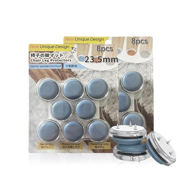 3本針で外れにくく・安定感抜群:この椅子脚カバー3つの釘と超強力な両面テープで二重固定、取り付け後も外れにくく、安定感が抜群です。超強力テープを使用し、両面テープのみで取り付けた場合と比べ、5倍の強度を誇ります。強力に固定されるので、長時間の使用でも安心です。