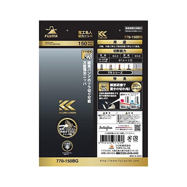 商品名:フジ矢(Fujiya) 電工名人強力ニッパ 150mm ラウンド刃・黒金 770-150BG