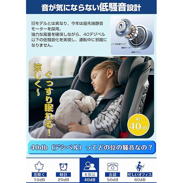 【無段階風量調整&低騒音設計】風量は、手元のダイヤルで微調整が可能です。風量を細かく調整できるため、車内環境に合わせて風量を調整することができます。クーラーシートは空気力学に基づいた高速動作、低騒音を兼ね備えているタービンブロワーファンを採用。動作騒音は40dB以下で高速動作を確保しながらも音は静かで運転の邪魔になりません。
