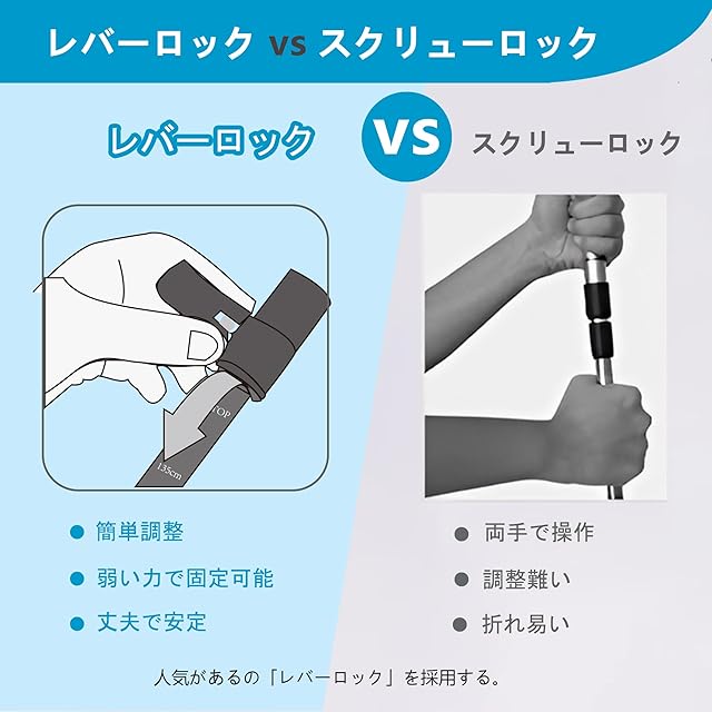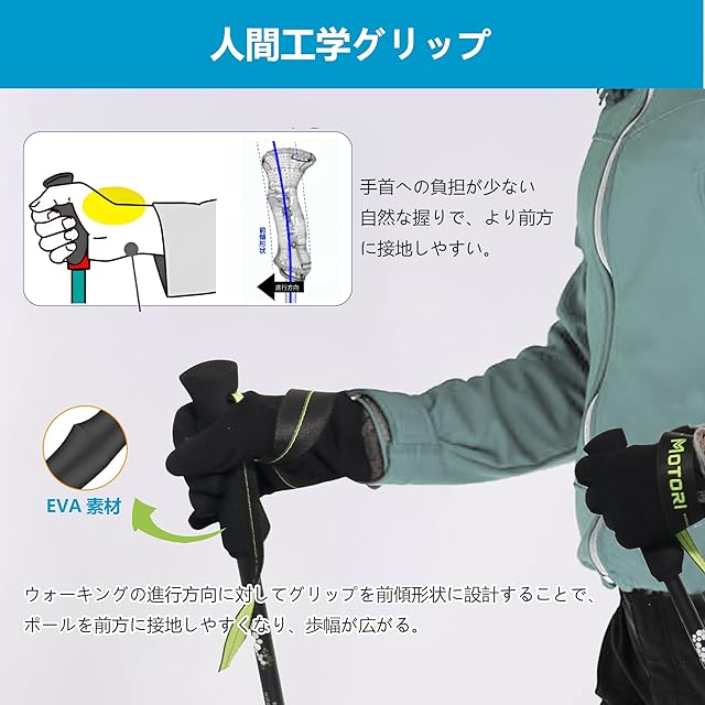✅【操作が簡単なレバーロック】MOTORIのハイキングポールは操作が簡単なレバーロックを採用しています。外側から操作する「コントロールロック」モデルが人気です。レバーロックはワンアクションで操作でき、少ない力でも確実に固定できます。