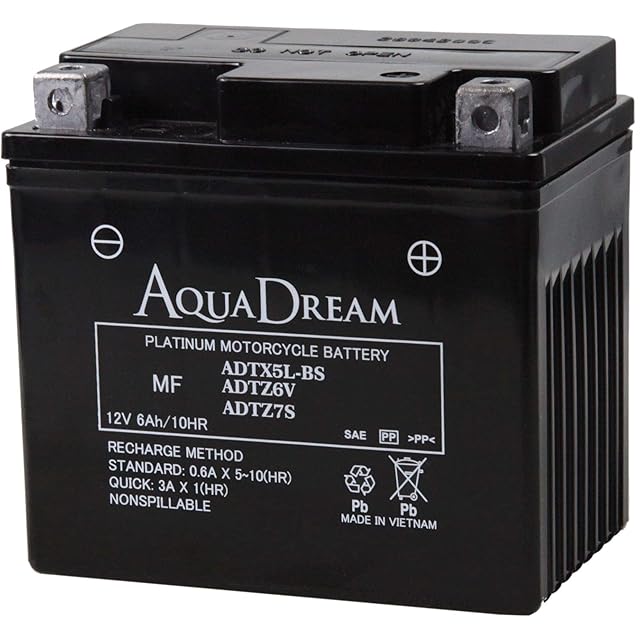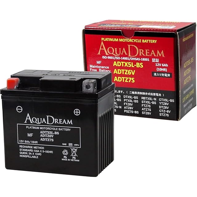 アクアドリーム バイク用 バッテリー 液入充電済 MF ADTX5L-BS/ADTZ6V/ADTZ7S (12V/6Ah/互換/YTX5L-BS/YTZ6V/YTZ7S)