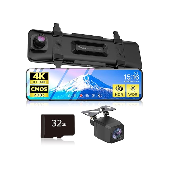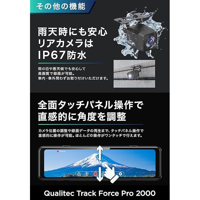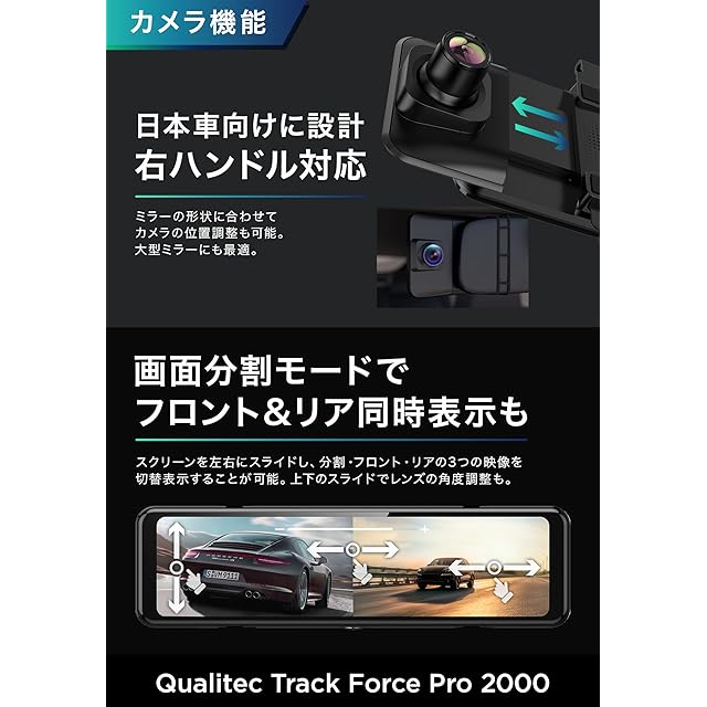商品名:Qualitec ドライブレコーダー ミラー型 4K画質 6ヶ月 HDR WDR 日本語サポート