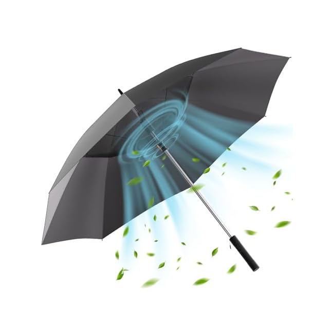 Umillion 日傘 扇風機付き日傘 ファン付き 長傘 120CM usb充電式 2段階送風 8本骨 UVカット 晴雨兼用傘 撥水加工 暑さ対策 遮光 遮熱 遮蔽率99% 男女兼用 通勤 通学 スポーツ観戦 サッカー ゴルフ 黒 | Trend Design BASE店