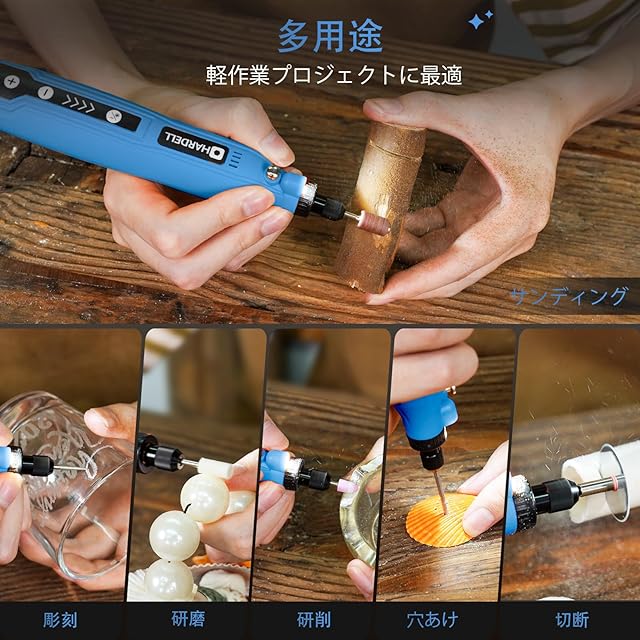 商品名:HARDELL ミニルーター 充電式 リューター 3.7V 5段変速 最高18000rpm USB Type-C ルーター 工具61pcs 個のツール 彫刻/研磨/穴あけ/汚れ落とし/切削 日本語取扱説明書同
