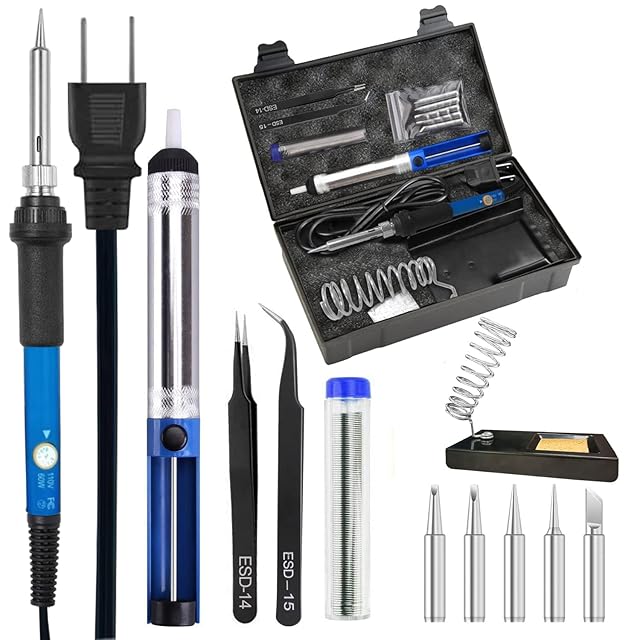 GLISTON はんだごて はんだごてセット 温度調節可(200~450℃) ハンダゴテ 14-in-1 電子作業・電気DIY用 基盤・自動車・自転車など 60W/110V 安全保障 機能アップ 収納ケース付 持運便利 | Trend Design BASE店