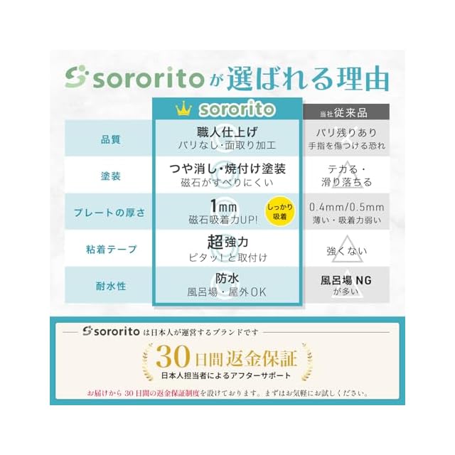 商品名:【日経MJ新聞掲載】 スチールプレート 白 強力 マグネット吸着用 【超強力・お風呂場OK】 職人仕上げ 板厚1mm (65*45*1mm) 10枚セット sororito