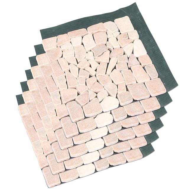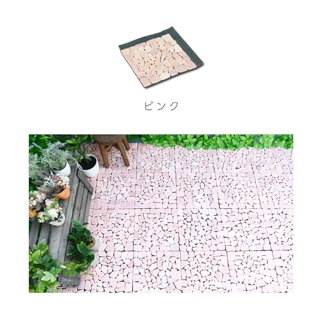 リビングアウト(Living Out) 天然石マット ピンク 本体: 奥行30.5cm 高さ1cm 幅30.5cm 6枚セット 防草シート付 敷くだけ 大理石 カット可能 正方形 | Trend Design BASE店