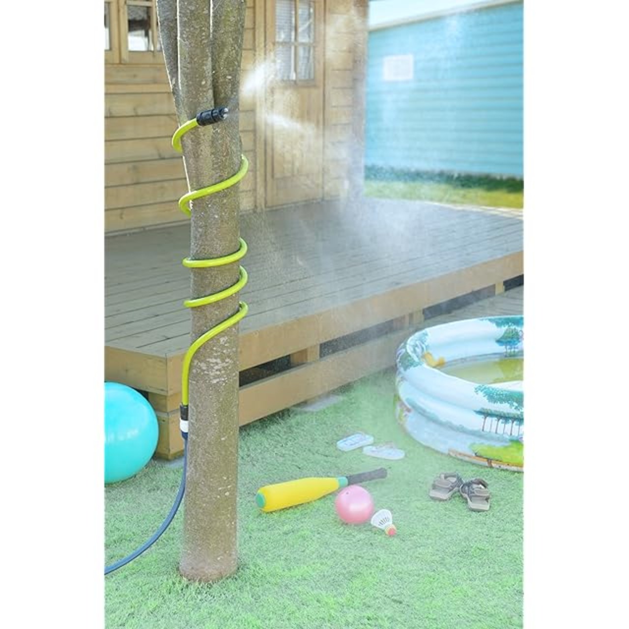商品名:グリーンライフ ミスト 熱中症対策 節電 省エネ 屋外 自由に形を変えられるホース仕様 工事不要 自立可能 (ライムグリーン) MH-25(LG)