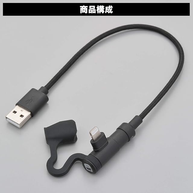 商品名:デイトナ(Daytona) バイク用 充電ケーブル 20cm USB-A & ライトニング iPhone対応 MFi認証 L字コネクター 15610