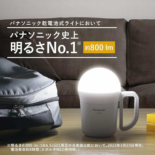 商品名:パナソニック LEDランタン 乾電池エボルタNEO付き強力ランタン(でかランタン)ランタンと懐中電灯の2WAY とにかく明るい800ルーメン 防滴仕様 タッチセンサー付 ホワイト BF-BL40K-W
