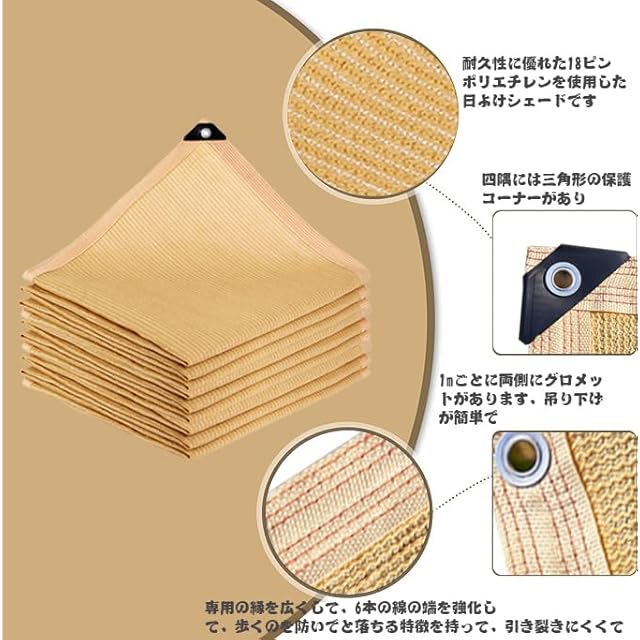 【製品仕様】サイズ:2m×3m;色:ベージュ;耐久性に優れた高密度なポリエチレンを使用した日よけシェードです。