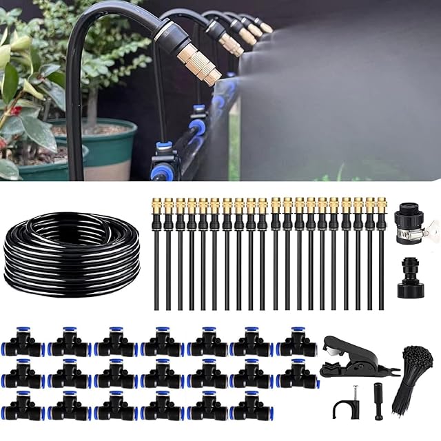 Menetop 噴霧ノズルミストシャワー 屋外 10M ミストノズル 360°曲げ可能な点滴灌漑キットガーデン用自動灌漑システム、温室、庭、芝生、植物用の調節可能なガーデン散水ミストシステム (10) | Trend Design BASE店