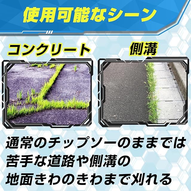 使用可能シーン:道路や側溝の地面きわまで刈れる