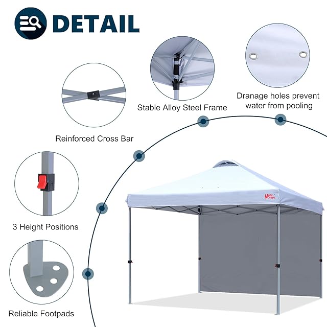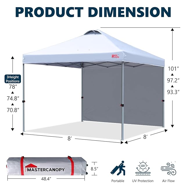 MASTERCANOPY ワンタッチタープテント サイドシート一枚セット 2M/2.5M/3M 三段階調節 スチールフレーム 風抜けベンチレーション 耐水 UVカット サンシェード 日除け 商/アウトドア用(キャスターバッグ ペグ ロープ ウェイトバッグ付き)(2.5M,白) | Trend Design BASE店