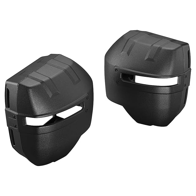 【LEDサイドターンランプ付きドアミラーを採用するグレード】 ※2025(令和7)年1月時点の調査情報。これ以降の仕様変更車には対応しない場合があります。 スズキ ジムニー:XC スズキ ジムニーシエラ:JC 【ジャンボサイズで圧倒的な存在感のドアミラーカバー】 シンプルな純正ドアミラーに装着するだけで、カンタンにタフで無骨に仕上げることができるドアミラーカバーです。 純正のLEDサイドターンランプ付きドアミラーに装着することで、ドアミラーの存在感が圧倒的に高まります。 ワイドフェンダーやモール類等のカスタムをしたジムニーをさらにタフなイメージに仕上げることができます。 ただし、カスタムをしていないジムニー(JB64W)に装着すると存在感があり過ぎてアンバランスになりますので、ご注意ください。