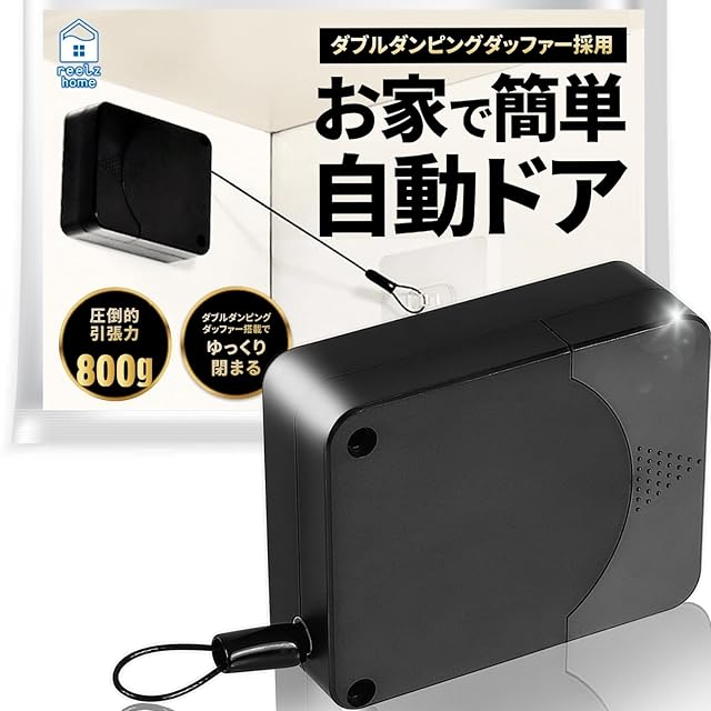 商品名:リールズホーム ドアクローザー 800g 引き戸 室内 オートロック ゆっくり閉まる 自動で閉まる ドア クローザー 調節機能 玄関 後付け ワイヤー スライドドア 【毎日新聞掲載】 (ブラック800g)