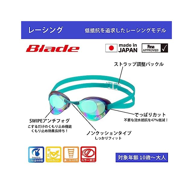 [ビュー] スイミングゴーグル Blade 余計な流水抵抗をカットした究極の低抵抗レーシングモデル 日本製 ノンクッション 10歳~大人用 WA承認 V121SAM SKY | Trend Design BASE店