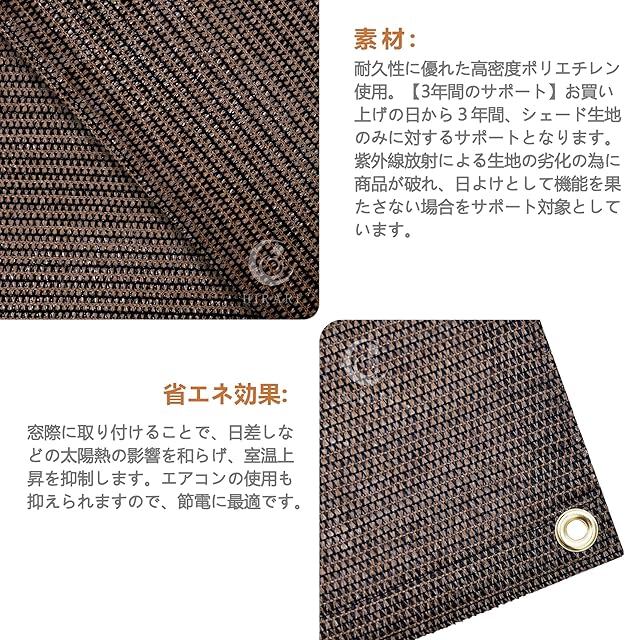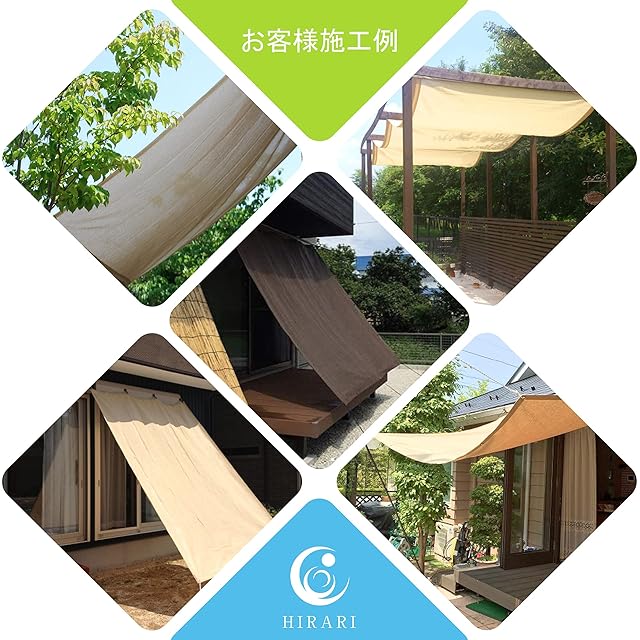 HIRARI バルコニー シェード 耐久性に優れた高密度ポリエチレン使用、通気性や遮光性に優れ、シェードの内側を涼しくします。有害な紫外線も90%カットするので。専用な取り付け金具でベランダや窓ペ、廊下、庭下、庭先、玄関などに簡単に取り付けることができます。お洒落な洋風デザインなので、日よけだけでなく、ご自宅やお庭のエクステリアとしてもご利用なれます。