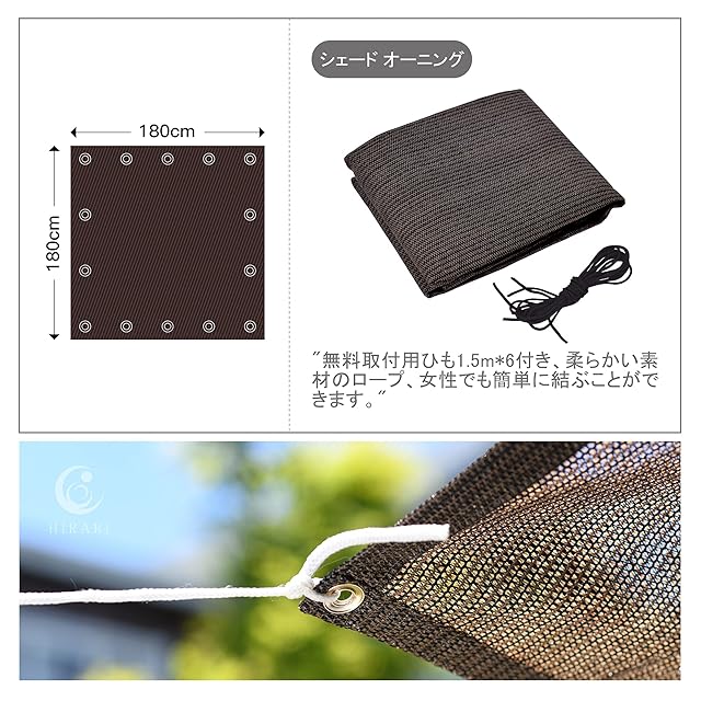 商品名:HIRARI 日よけ シェード 日除け シェード オーニング 簡単設置 (180×180cm) モーカ