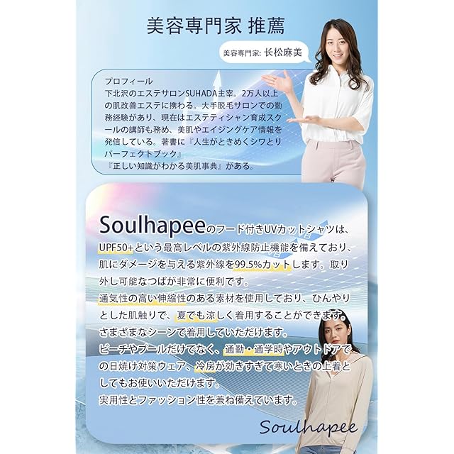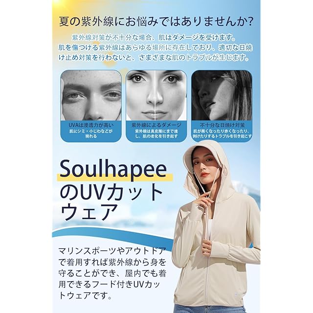 商品名:[Soulhapee] 【美容の専門家が推薦】 ラッシュガード レディース uvカット パーカー 涼しい 日焼け防止 夏用 長袖 ラッシュパーカー 接触冷感 通気性 UPF50+ アウター 夏 フード付き 紫外線対策
