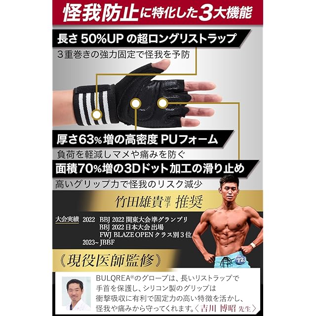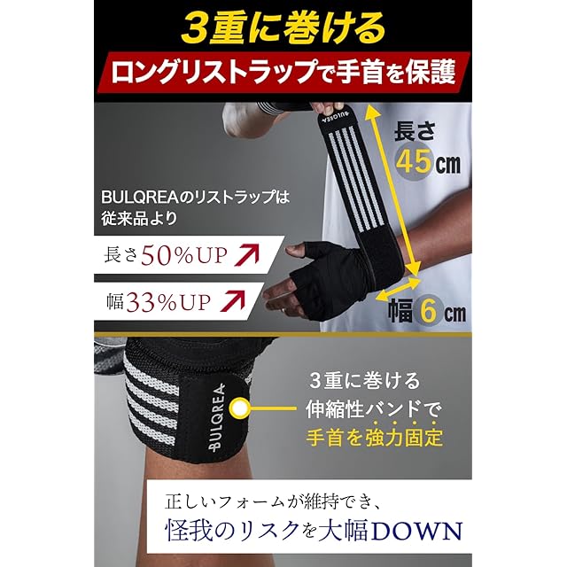 商品名:【医師監修】トレーニンググローブ【長さ50%UPの超ロングリストラップ】マメ防止 3層構造 ハニカム メンズ レディース 筋トレ ジム ダンベル ベンチプレス 懸垂 手首 パワーグリップ BULQREA (ブラック, M, ロングリストラップ)