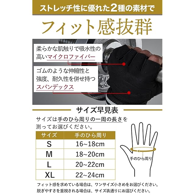 【2種の伸縮素材でフィット感◎】柔らかく伸縮性のあるスパンデックスとマイクロファイバーでできているため、手にフィットしやすく筋トレをより快適に行えます。