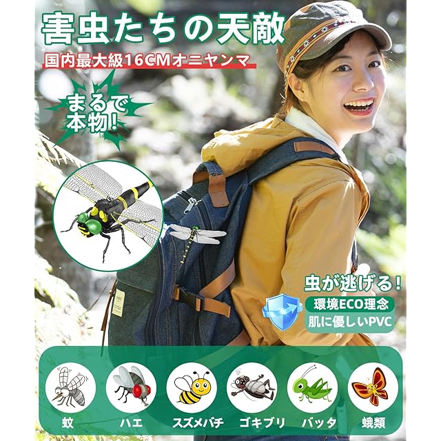 2025年新型「市販最大 オニヤンマ16センチ」虫除けとんぼ リアル 虫除け対策 肉食トンボ 耐久性PVC素材 安全ピン付きストラップ付き 釣り 室内装飾 ベランダ 網戸 室内 登山 渓流釣り キャンプ アウトドアに対応 (16cm-4匹) | Trend Design BASE店