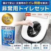 【セット内容】凝固剤50包、排便袋(黒)50枚、便器カバー(透明)5枚、保管袋(青)5枚、使い捨て手袋50組。