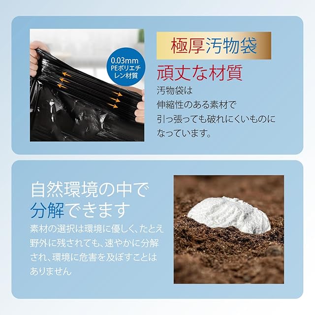 【トイレ凝固剤×高吸水性樹脂|3ステップ直感的操作】 ①便器に袋設置 ②凝固剤を均等散布 ③固化後に密封廃棄。環境配慮型素材|廃棄時も土中分解可能。