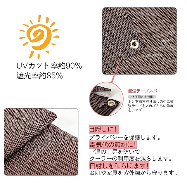 取り付け:錆びないのゴールデンアルミハトメが付いているので、付属品6x1.5m取付けひも、ベランダや窓ペ、廊下、庭下、庭先、玄関などに簡単に取り付けることができます。お洒落なデザインなので、日よけだけでなく、ご自宅やお庭のエクステリアとしてもご利用なれます。