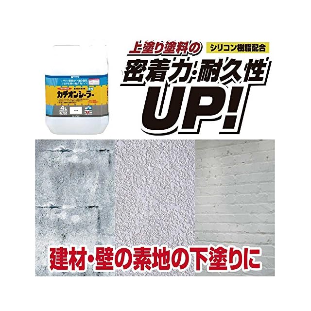 【用途】 ■[建材の下塗り]ブロック / モルタル / コンクリート / サイディング(セラミック系は除く)など ■[各種下塗り]室内のビニールかべ紙 / 石こうボード / ケイカル板 ■[密着向上に]外壁塗り替え塗装時 / 旧塗膜 【塗れないもの】■表示以外の用途には使用しないこと。 ■ツルツルした表面・特殊加工された物 シリコン樹脂・フッ素樹脂・タイル・陶器・天然石、特殊防水加工された素材などには使用できません。 ■常に水がかかる所 プール / 浴槽 / 浴室の床 / 池